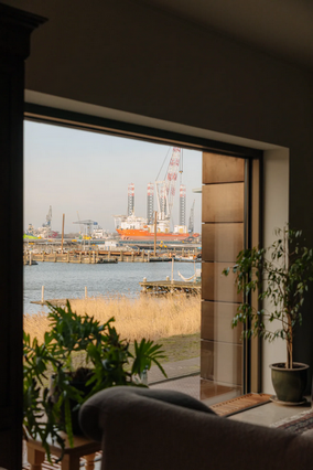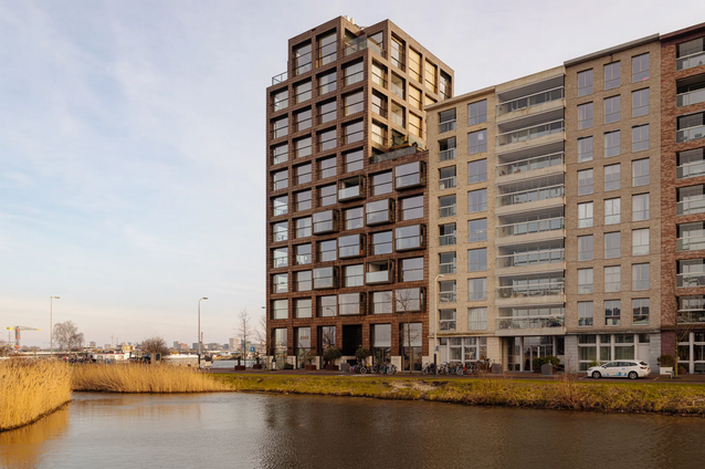 Gelegen aan een zeer rustige straat, direct aan het water, in een hoogwaardig woongebouw uit 2018 in de duurzame en waterrijke wijk de Houthavens, op korte afstand van onder meer de Jordaan en het Westerpark.